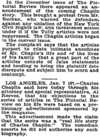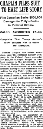 & CHAPLIN FILES SUIT TO HALT LIFE STORY