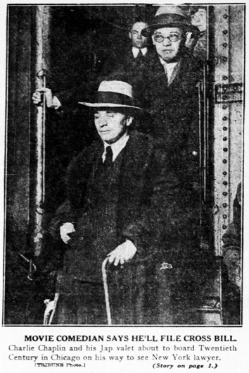 Charlie Chaplin and his Jap valet about to board Twentieth