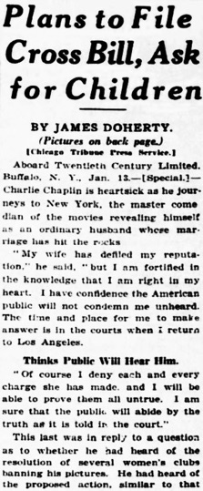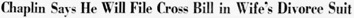 Chaplin Says He Will File Cross Bill in Wife‘s Divorce Suit