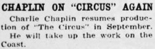 & CHAPLIN ON „CIRCUS“ AGAIN
