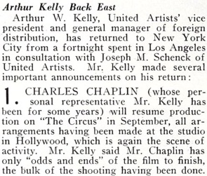 is again the scene of activity. Mr. Kelly said Mr. Chaplin has