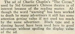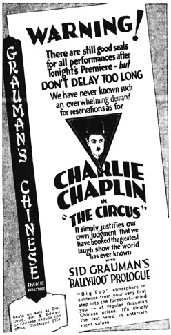 & The ad of Charlie Chaplin‘s The Circus used by Sid
