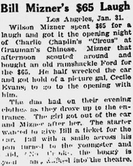 Los Angeles, Jan. 21. Wilson Mizner spent $65 for a laugh