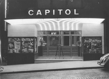 Capitol Theatre, exterior by night, marquee „Die Ratten,“