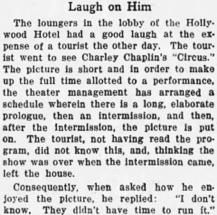 The tourist went to see Charley Chaplin‘s Circus. The picture