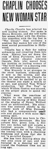 & CHAPLIN CHOOSES NEW WOMAN STAR