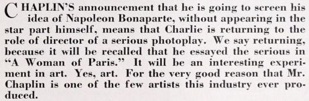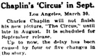Charles Chaplin will not finish his new picture, „The Circus,“