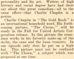 dramatic feature, A Woman of Paris, with Edna Purviance.“