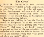 Charlie Chaplin‘s new feature comedy for United Artists Corporation is to be The Circus. In it he will appear in his