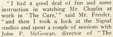 Mr. Chaplin at work in The Cure,‘ said Mr. Freuler.“ (...)