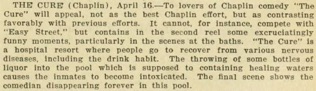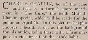 & THE CURE (Chaplin), April 16. – To lovers of Chaplin comedy