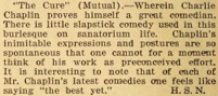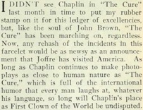 I DIDN‘T see Chaplin in „The Cure“ last month in time to put