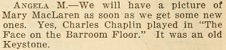 & ANGELA M. – (...) Yes, Charles Chaplin played in „The Face
