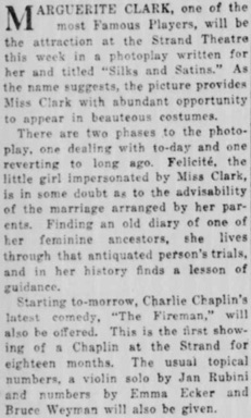„Finest showing of a Chaplin at the Strand for eighteen months“