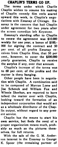 Editorial content. „Chaplin‘S TERMS GO UP.