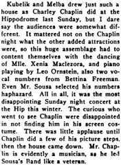 a house as Charley Chaplin did at the Hippodrome last Sunday,