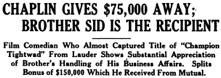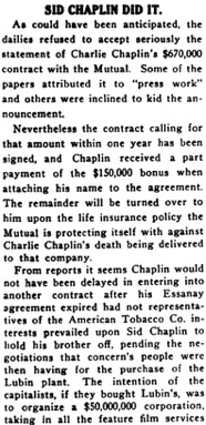 Chaplin‘s $670,000 contract with the Mutual. Some of the papers attributed it to ,press work‘ and others were inclined