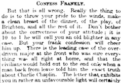 Der Text: „Statement by Charles Chaplin. Nach eingehender