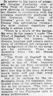 I made ,The Thief of Bagdad,‘ for it is a reason