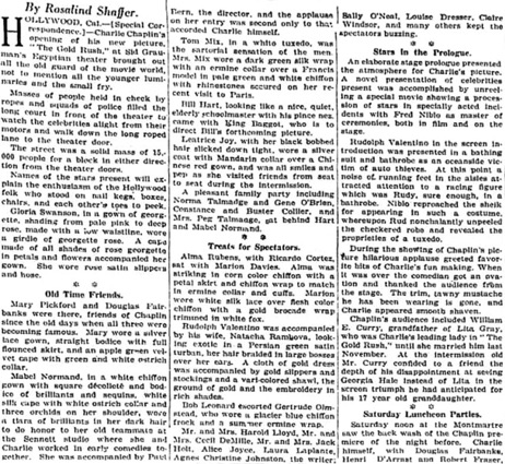 Charlie Chaplin‘s opening of his new picture, The Gold Rush,