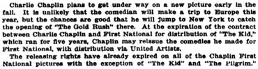 of The Gold Rush there. At the expiration of the contract between Charlie Chaplin and First National for distribution