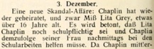 Es wird betont, dass Lita Chaplin noch schulpflichtig