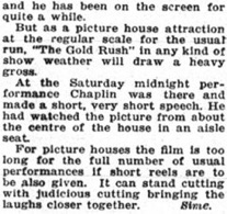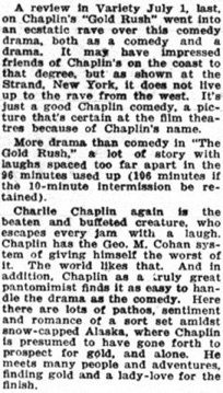 „A review in Variety July 1, last, on Chaplin‘s Gold Rush