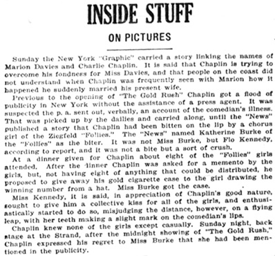 Miss Kennedy, it is said, in appreciation of Chaplin‘s
