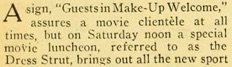 „A sign, ,Guests in Make-Up Welcome,‘ assures a movie