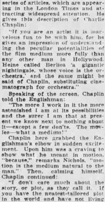 Editorial content. „PHILOSOPHY OF CHAPLIN EXPRESSED