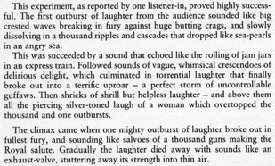 & This experiment, as reported by one listener-in, proved highly successful. The first outburst of laughter from the