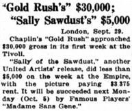 Chaplin‘s „Gold Rush“ approached $30,000 in its first
