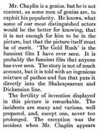 Charles Chaplin in his new film, The Gold Rush. It is notorious