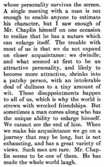 becomes, the more determined Mr. Chaplin is to treat it as an