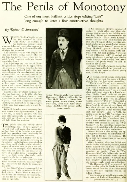 Robert E. Sherwood, Photoplay, New York, November 1925