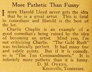 Miss Underhill says the Charlie Chaplin you and