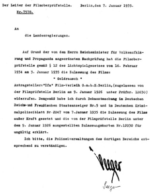 Goldrausch is admitted by the Film-Oberprüfstelle,