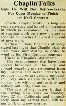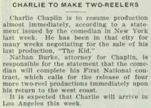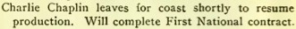 & Charlie Chaplin leaves for coast shortly to resume production.