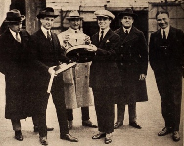 Reeves, Chaplin‘s manager, holding check; Mr. Chaplin