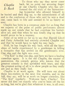 Editorial content. „,I Want to Meet Charlie Chaplin,‘