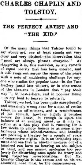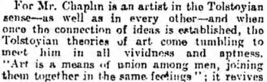 For Mr. Chaplin is an artist in the Tolstoyian sense.“ (...)