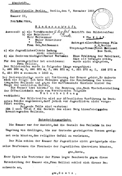 Filmprüfstelle Berlin, Deutschland, November 7, 1923.