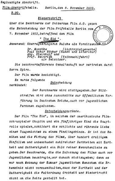 Film-Oberprüfstelle, Berlin, Deutschland, November 8, 1923.