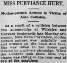 Editorial content. „MISS PURVIANCE HURT.
