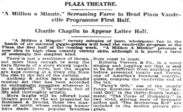 Charles Chaplin, The Funny Drunk at the Plaza Next Week