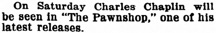 „On Saturday Charles Chaplin will be seen in The Pawnshop,