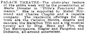 in Tillie‘s Punctured Romance. She is supported by Mabel Normand and Charles Chaplin and a capable company.“ (...)