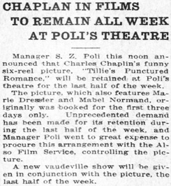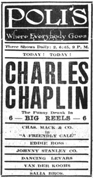 Manager S. Z. Poli this noon announced that Charles Chaplin‘s