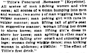 The following cutouts were ordered in films inspected by the municipal censor board at the city hall yesterday:“ (...)