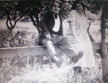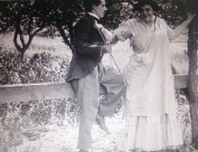 & Marie Dressler on the porch of her home in Beverly Hills